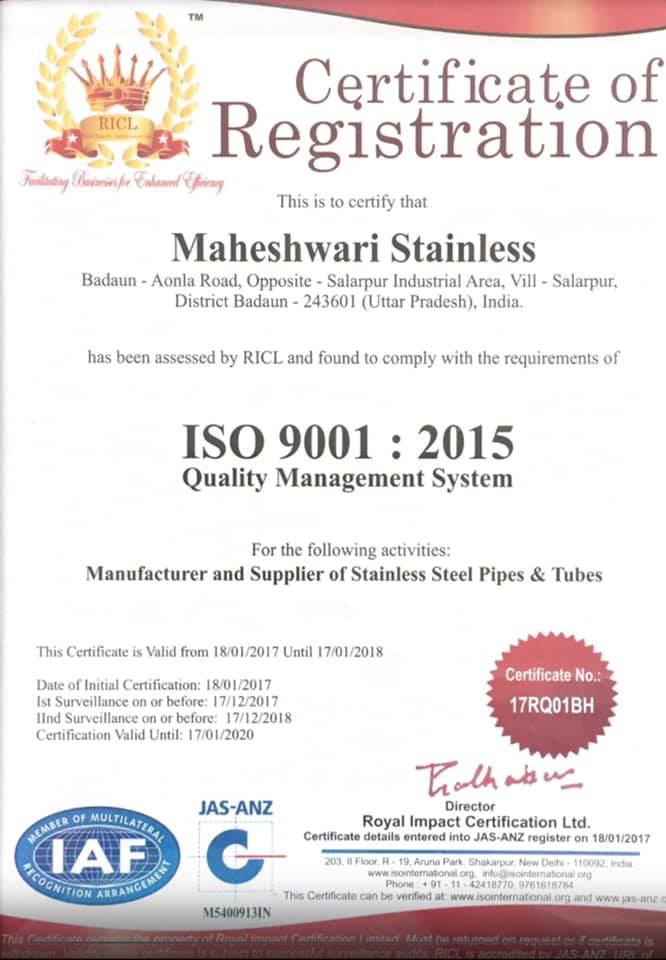 At Maheshwari Stainless, quality isn’t just a promise — it’s the foundation of everything we do. Every pipe, tube, sheet, and coil we deliver undergoes rigorous checks to ensure it meets international standards of strength, durability, and performance.